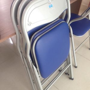 Ghế gấp khung ống thép Ø22, khung thép mạ Ni-Ce chống gỉ. phần đệm mút bọc da màu (caro, đen, xanh, đỏ, vàng…)