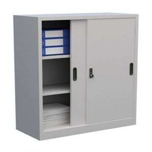 Tủ thấp TU88S Hòa Phát. Tủ dạng đứng hai cánh lùa, bên trong có 2 đợt chia 3 ngăn.