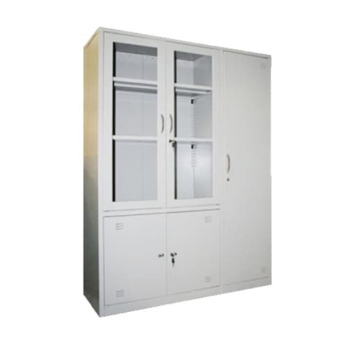 Tủ sắt TU09K5 hay còn gọi là TU09K5CK Hòa Phát kết hợp tủ hồ sơ và tủ treo quần áo. Khoang bên phải có 1 suốt treo áo và 1 đợt. Khoang bên trái là tủ 02 cánh kính mở có 2 đợt chia 3 ngăn, chiều cao đợt có thể thay đổi theo ý muốn. Bên dưới cánh kính là 02 cánh sắt mở riêng biệt có khóa.
